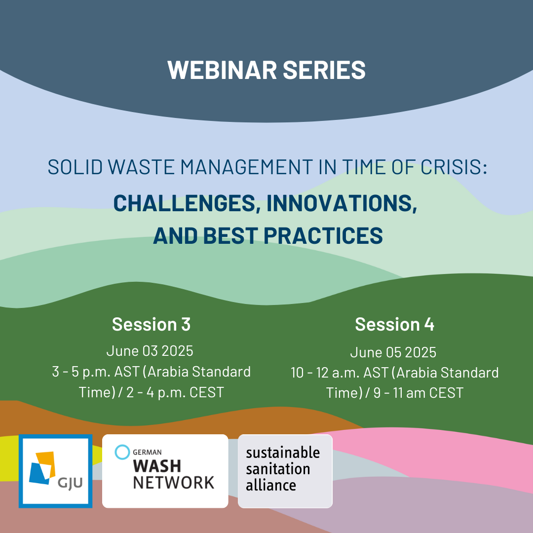 The webinar is co-hosted by the German WASH Network/German Toilet Organization, the German-Jordanian University, and SuSanA.