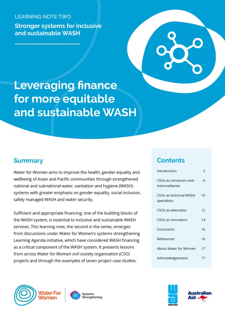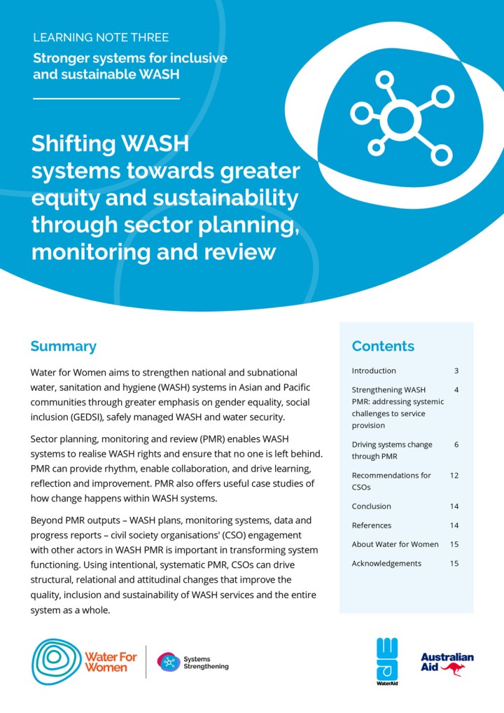 This systems strengthening series shares lessons from Water for Women about how CSOs and research organisations can contribute to stronger systems for inclusive and sustainable WASH.