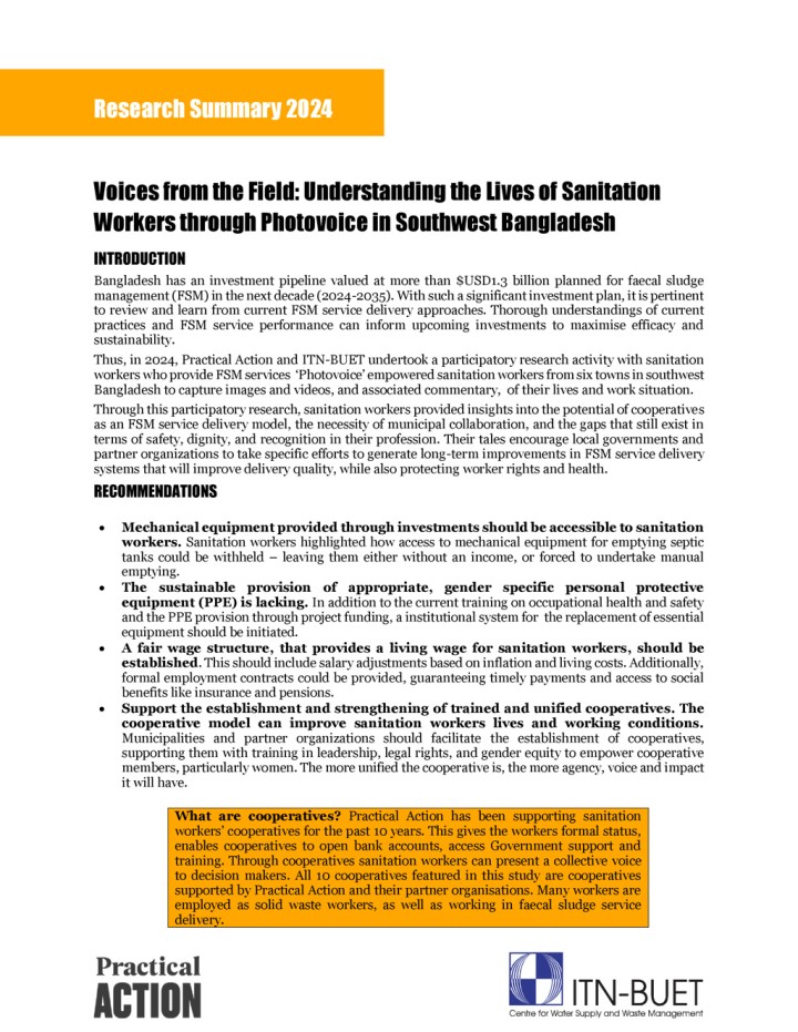 Bangladesh has an investment pipeline valued at more than $USD1.3 billion planned for faecal sludge management (FSM) in the next decade (2024-2035). With such a significant investment plan, it is pertinent to review and learn from current FSM service delivery approaches. Thorough understandings of current practices and FSM service performance can inform upcoming investments to maximise efficacy and sustainability. Thus, in 2024, Practical Action and […]