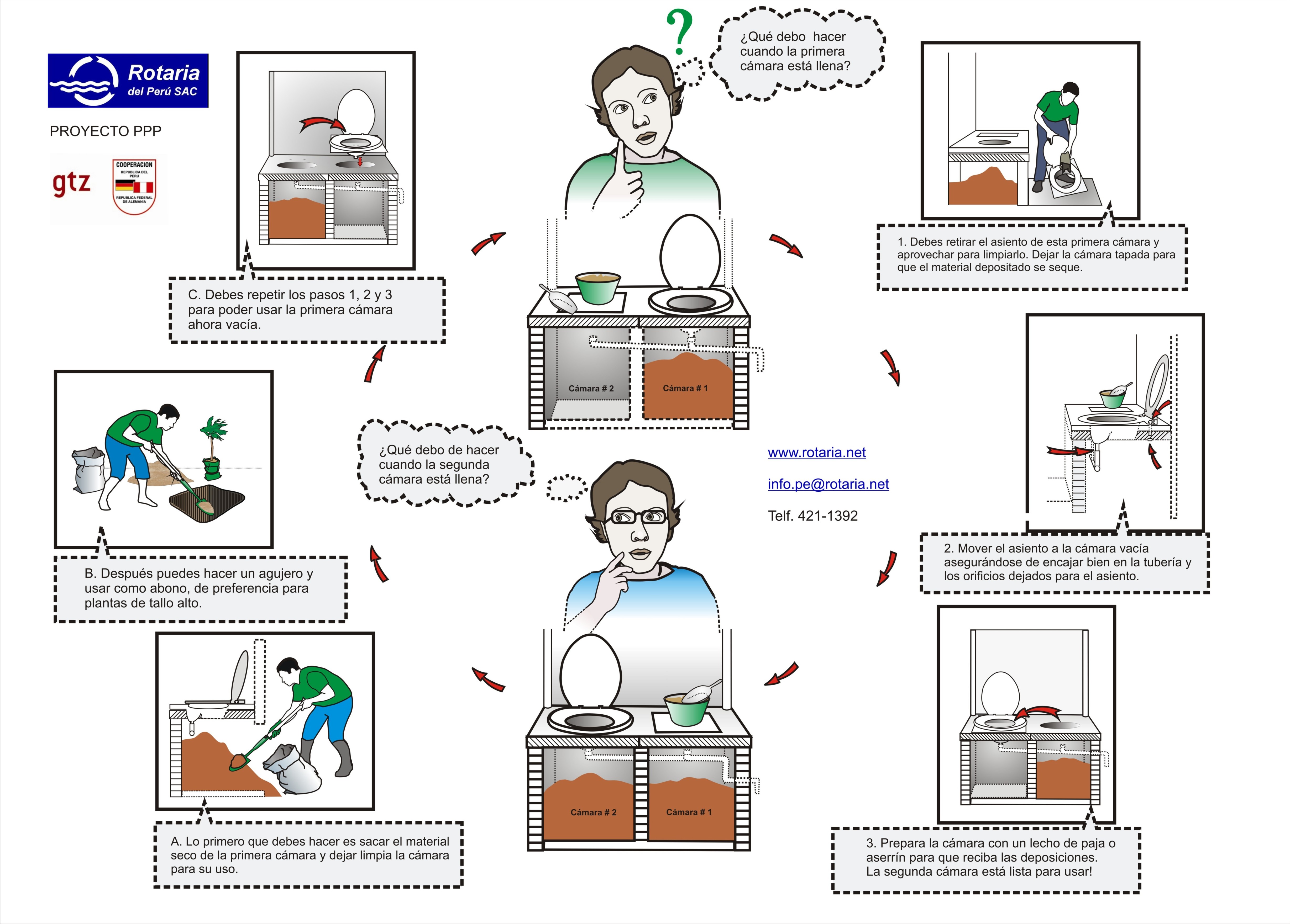 ROTARIA del Peru SAC (2011). Como se usa el baño mejorado (in Spanish) Poster on the faeces management of a UDDT with bench GTZ and Rotaria del Peru SAC