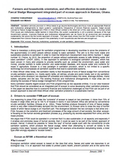During the last years EcoSan Club was partner of the ROSA project. The ROSA (Resource-Oriented Sanitation concepts for peri-urban areas in Africa) project proposed resources-oriented sanitation concepts as a route to sustainable sanitation and was funded within the EU 6th Framework Programme, Sub-priority "Global Change and Ecosystems". The project had duration from October 2006 to March 2010 and was implemented in four pilot cities: Arba […]